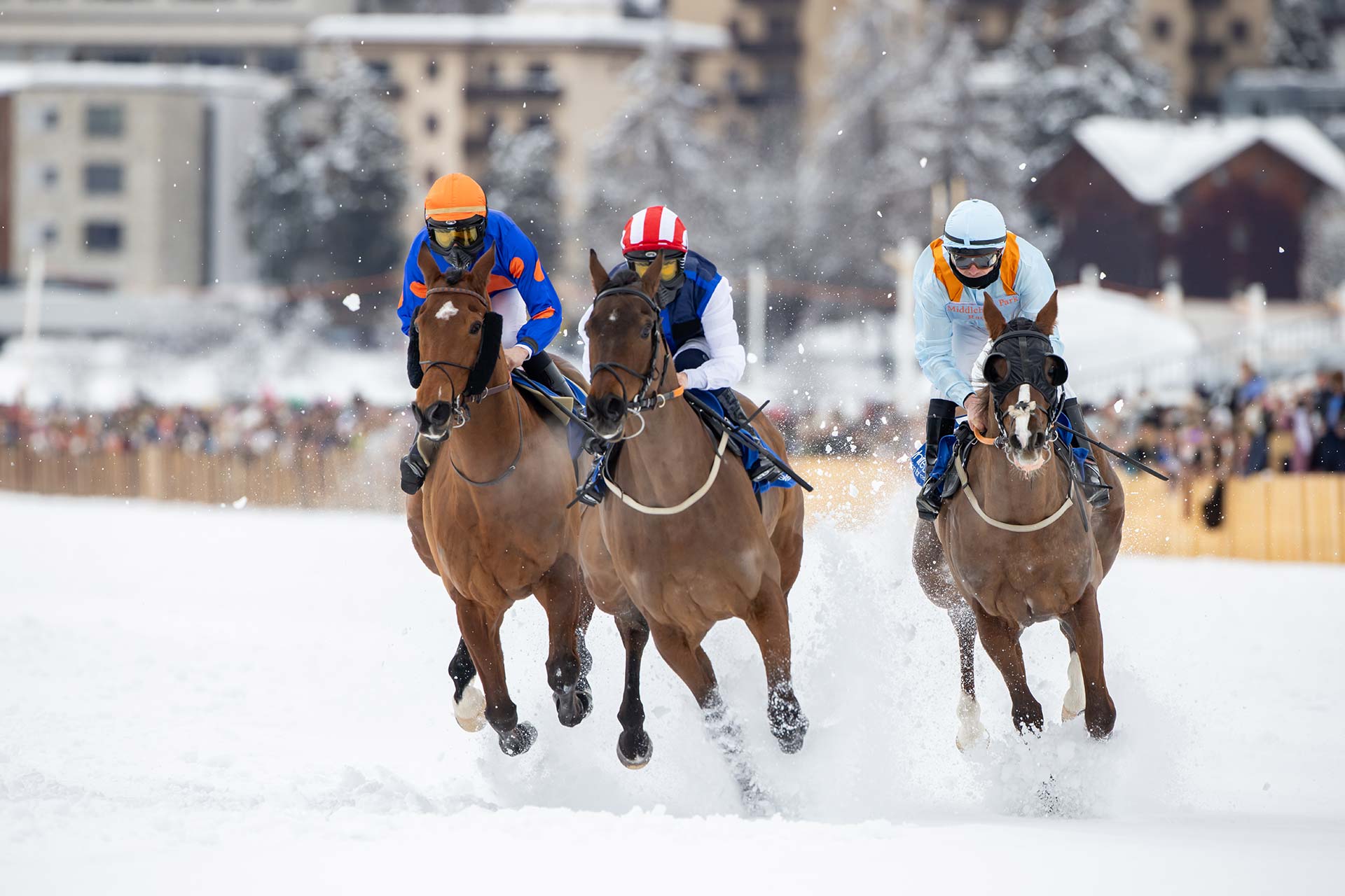LSR: Der White Turf ist in jeder Hinsicht aussergewöhnlich. Kein anderes Rennen findet auf einem zugefrorenen See inmitten der Engadiner Berge statt – diese Kulisse ist spektakulär, aber sie fordert auch alles ab. Der Untergrund aus Schnee und Eis verändert sich täglich und verlangt den Pferden höchste Trittsicherheit ab. Auch die Luft auf 1’800 Metern Höhe ist dünner, was zusätzliche Kondition erfordert.
